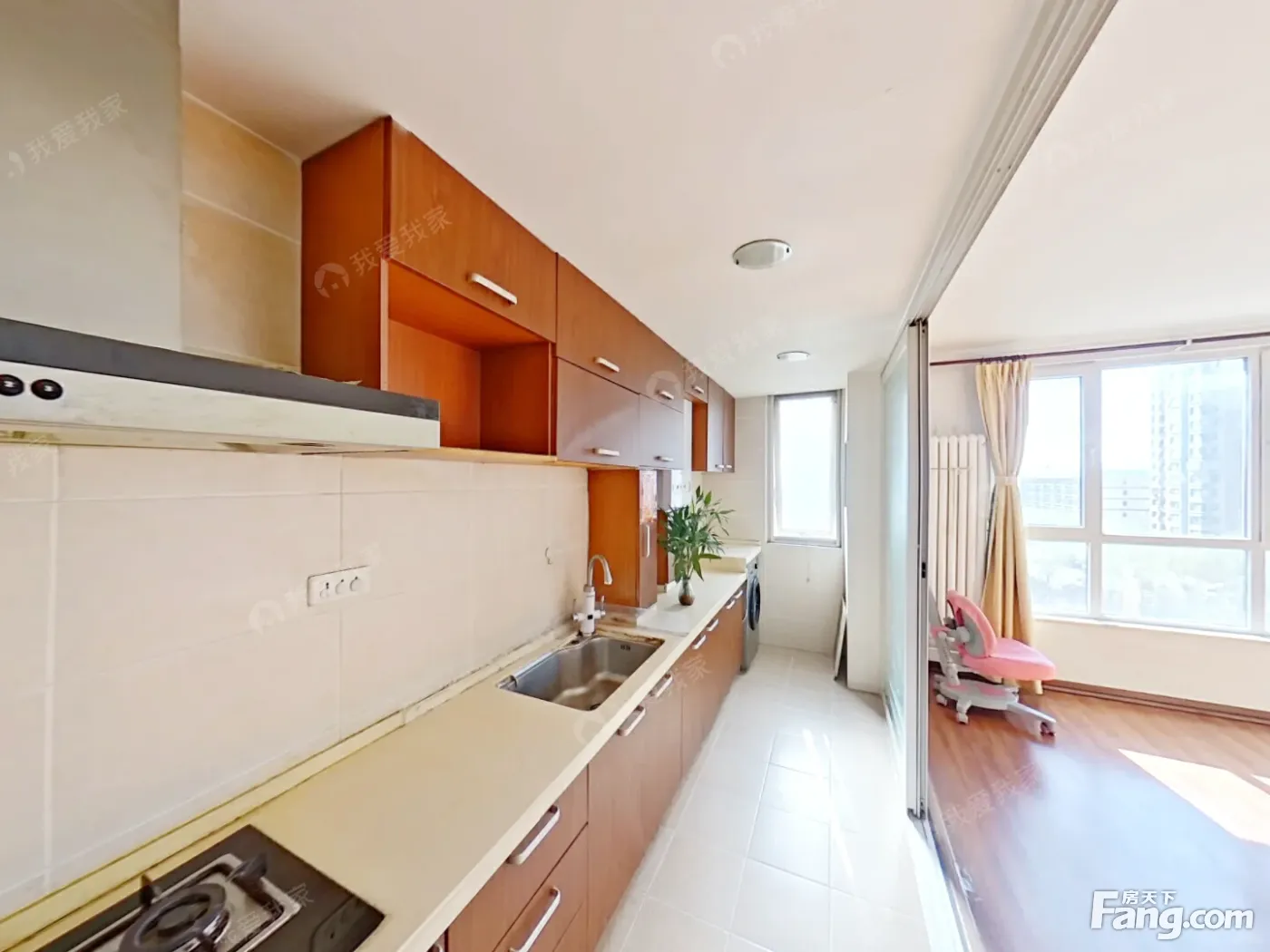 户型介绍:此房朝西向一居,客厅的窗户比较大,使用面积达到23平左右,宽敞明亮,如果家人不够住,客厅还能再隔出一间卧室,主卧室带阳台,晾晒衣服很方便,私密性好。客厅和厨房的墙不是称重墙,现改成推拉门,客厅更敞亮。