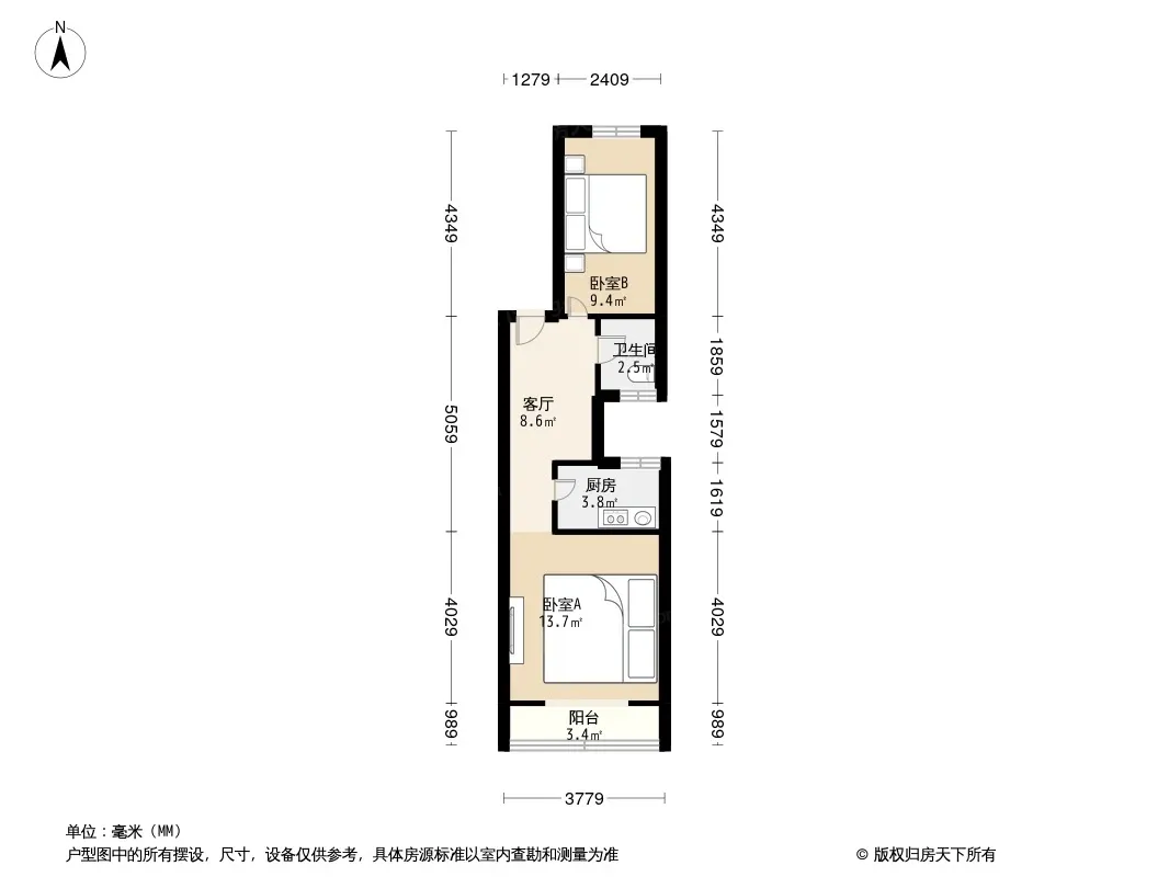 户型齐全,主打户型方正,双阳台二居