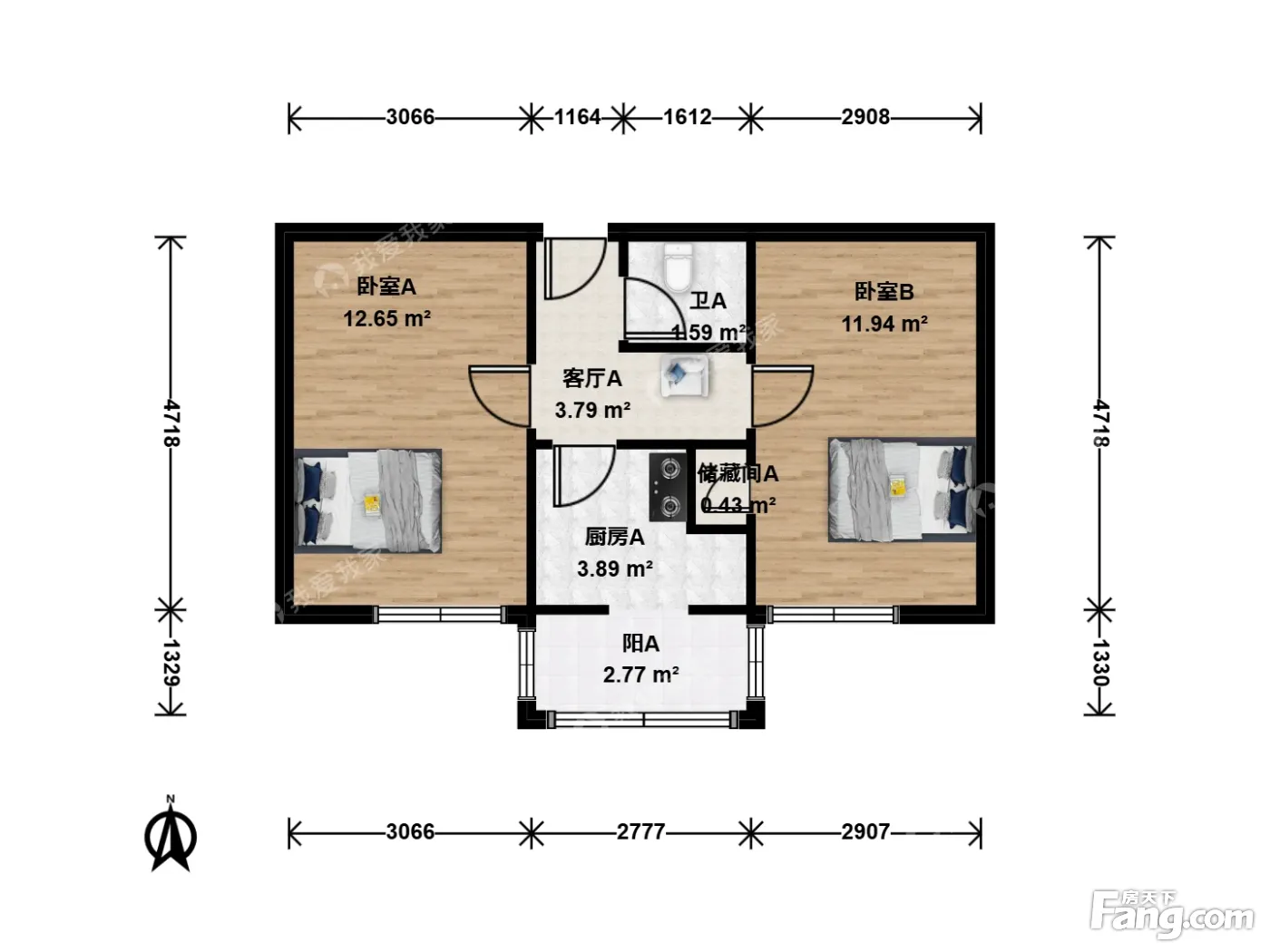 户型齐全,主打明厨,双阳台二居