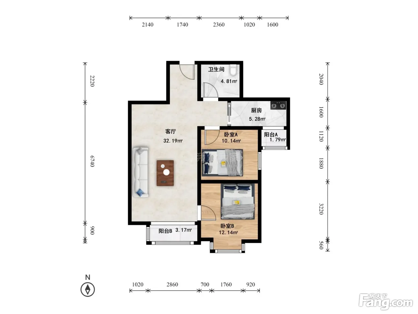 户型齐全,主打独立衣帽间,双阳台,双卧朝南二居