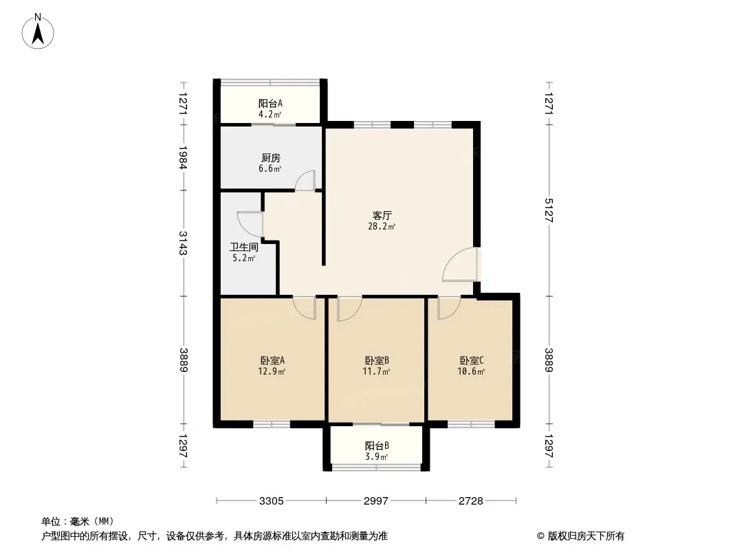 户型齐全,主打户型方正,明厨,客厅朝南,双卧朝南三居