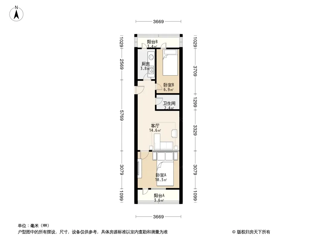户型齐全,主打户型方正,明卫,客厅朝南,双阳台二居