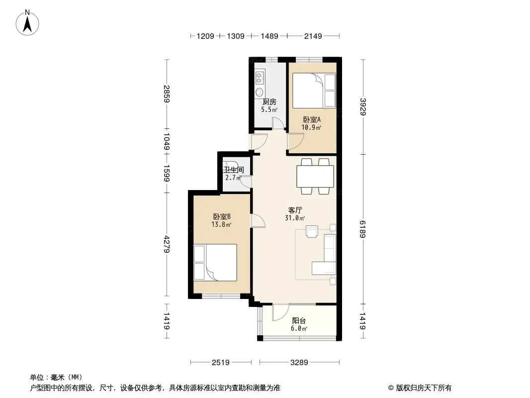 户型齐全,主打户型方正,明厨,客厅朝南二居