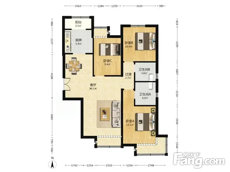 融景城 3室1厅 南 北