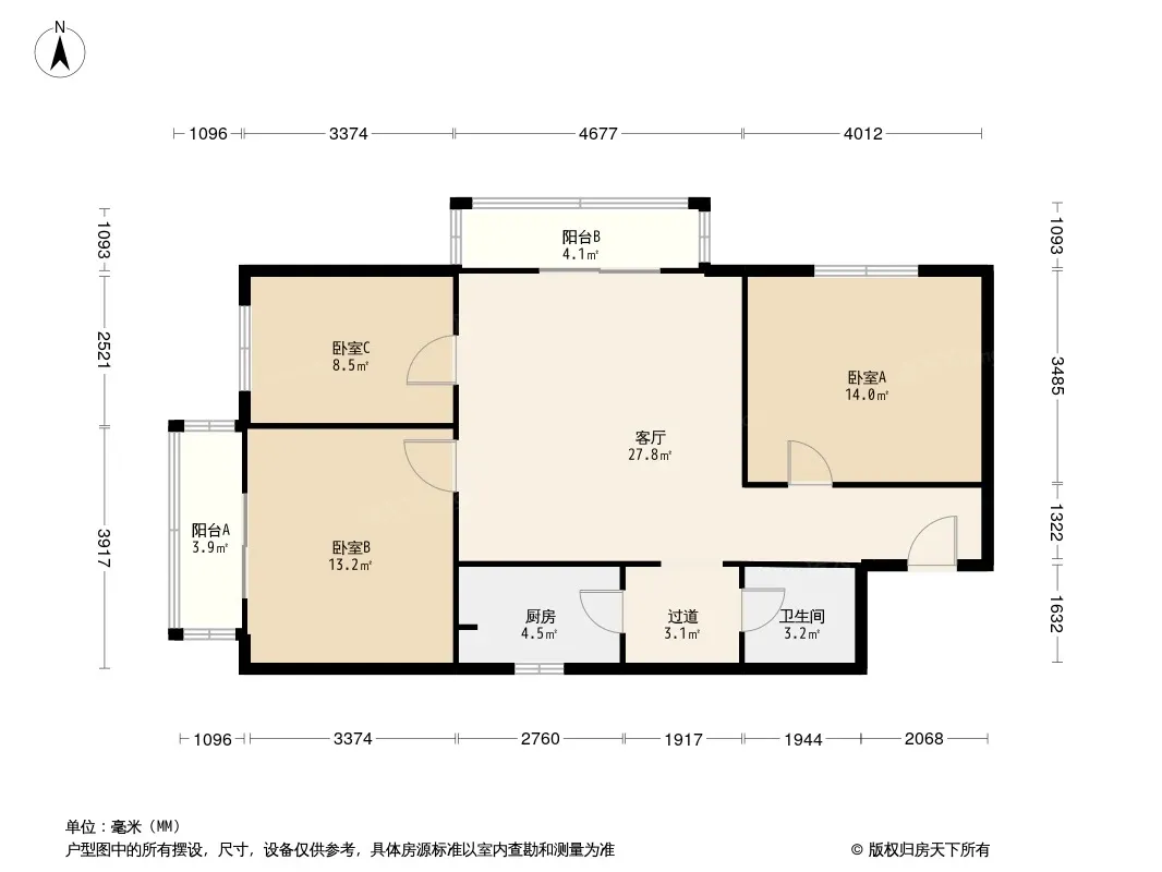 户型齐全,主打明厨,双阳台,双卧朝南,主卧朝南三居