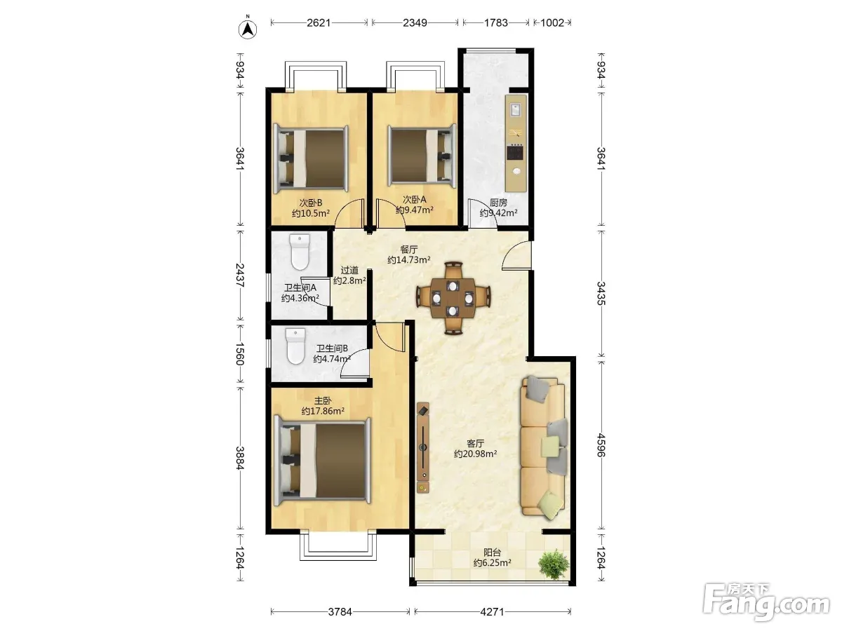 户型齐全,主打户型方正,双阳台二居