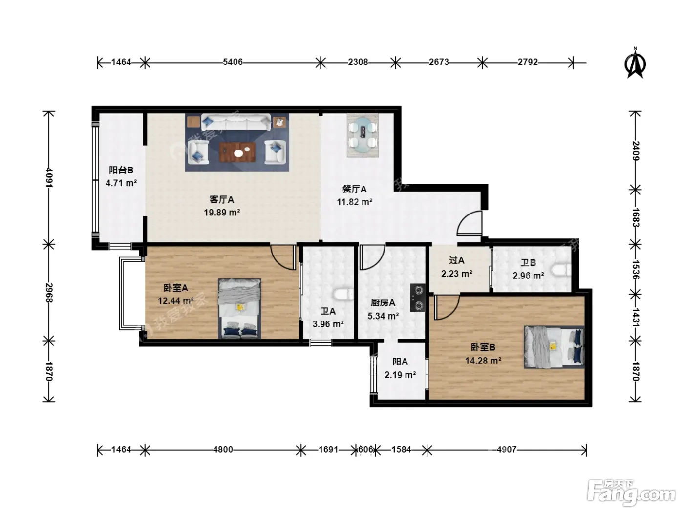 户型齐全,主打户型方正,明卫,双阳台,主卧朝南二居
