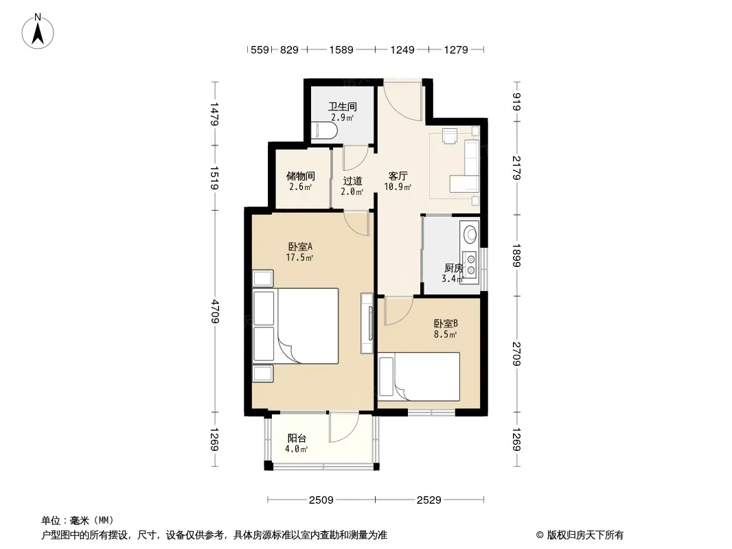 户型齐全,主打户型方正,明厨,客厅朝南,主卧朝南二居
