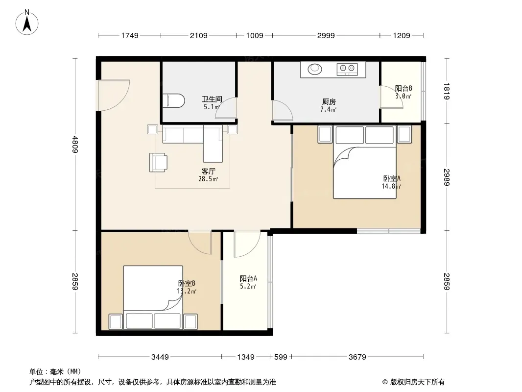 户型齐全,主打双阳台,主卧朝南二居