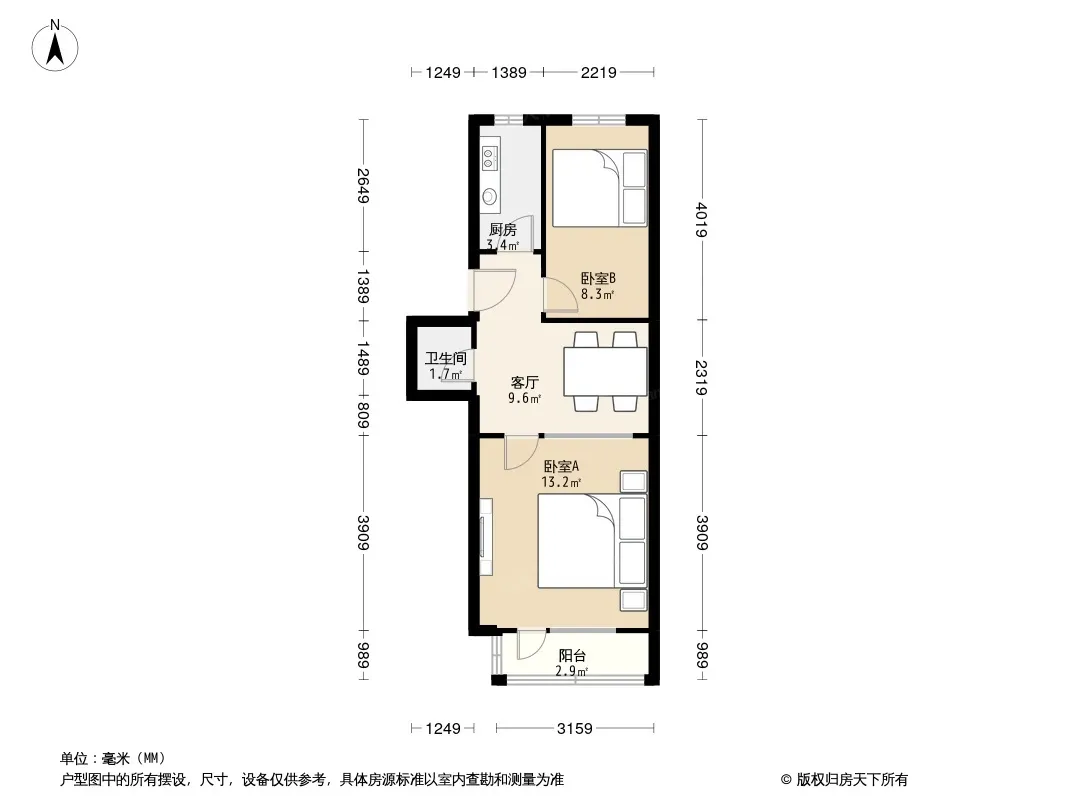户型齐全,主打户型方正,明厨,客厅朝南,双卧朝南,主卧朝南二居