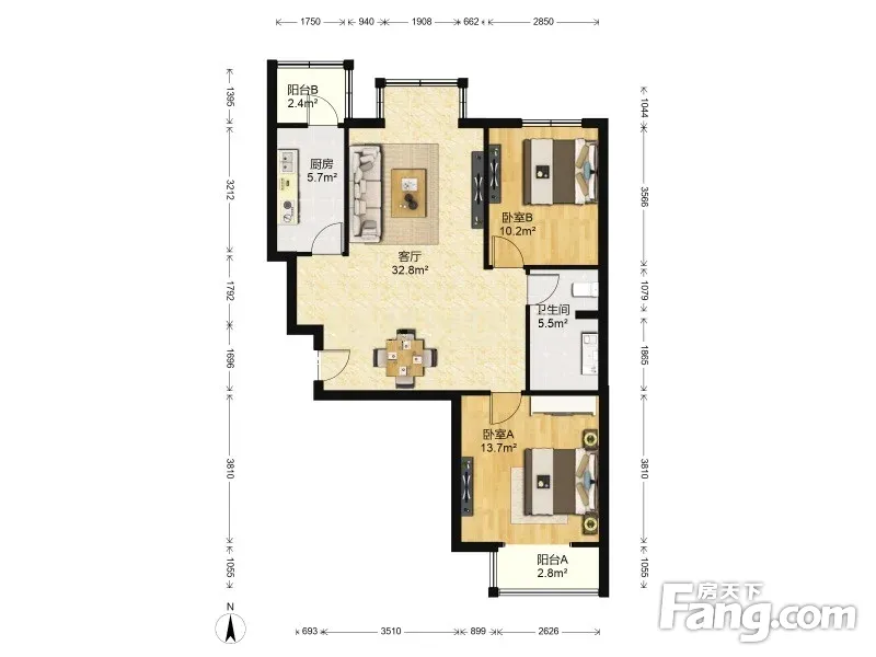 户型齐全,主打户型方正,双阳台二居