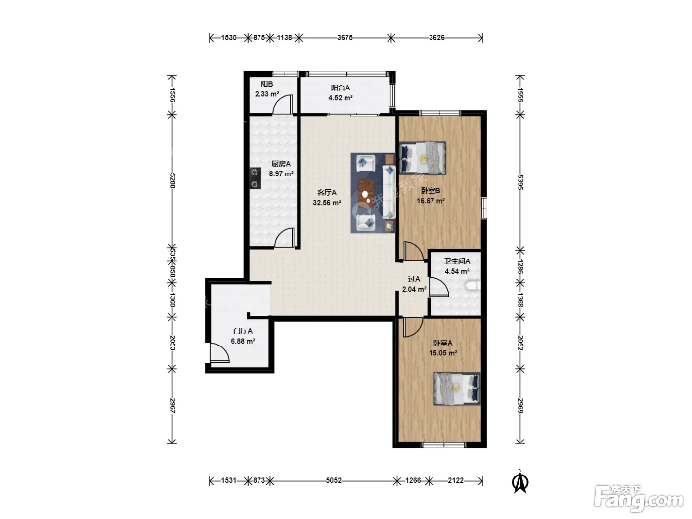 户型介绍:房子南北朝向,户型方正,好利用