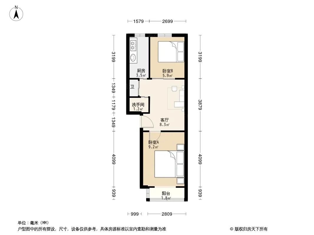 户型齐全,主打户型方正,明厨,客厅朝南二居