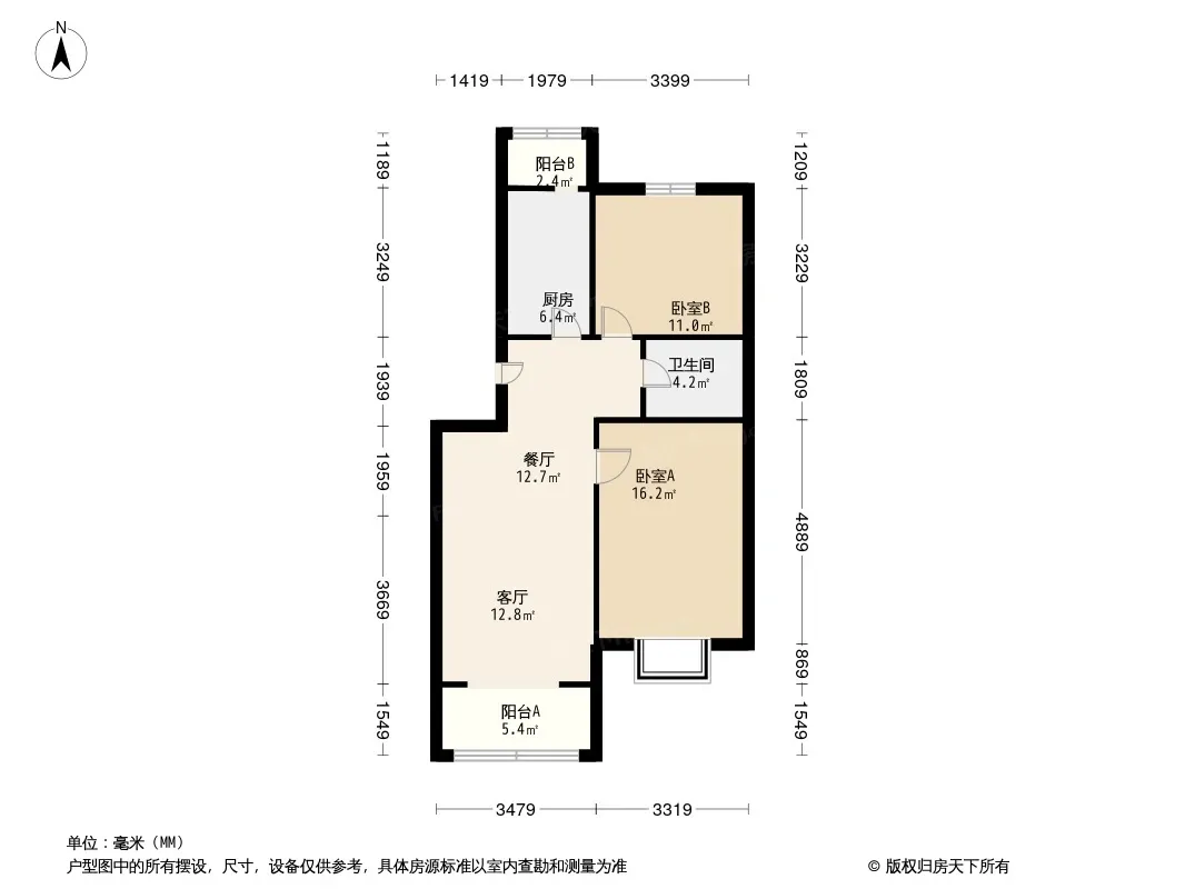 户型齐全,主打户型方正,明厨,主卧朝南二居