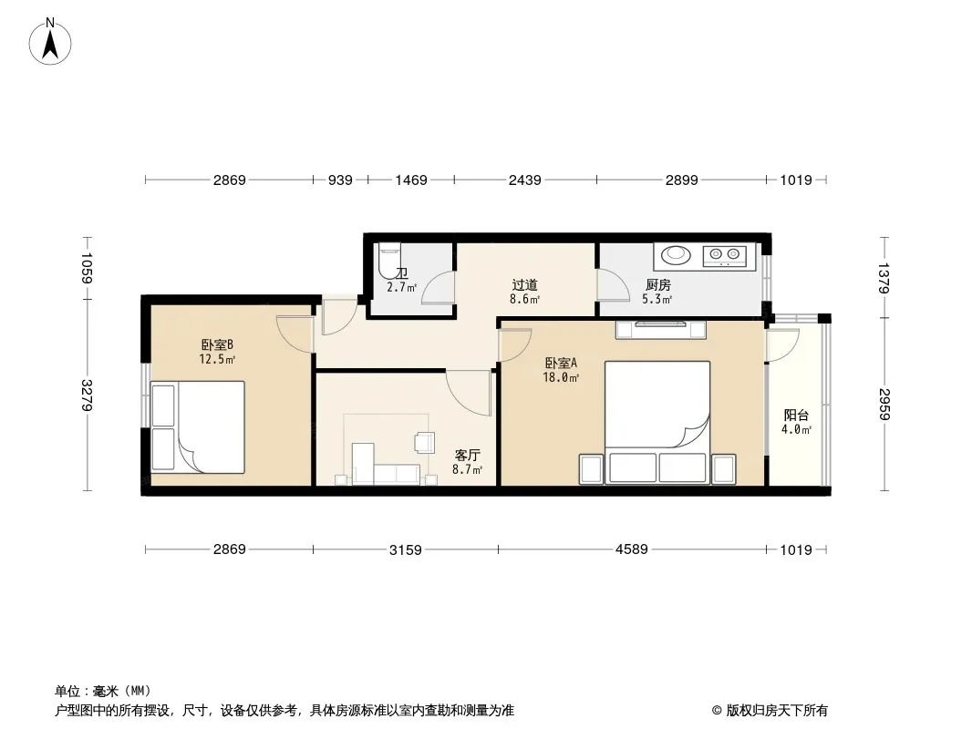户型齐全,主打户型方正,明厨,客厅朝南,主卧朝南二居