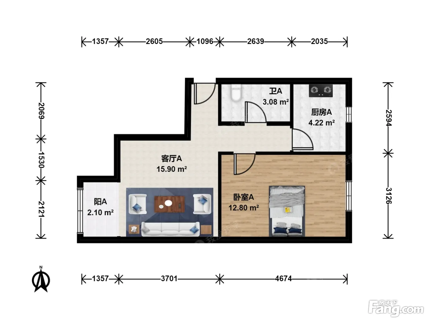 户型齐全,主打明厨一居