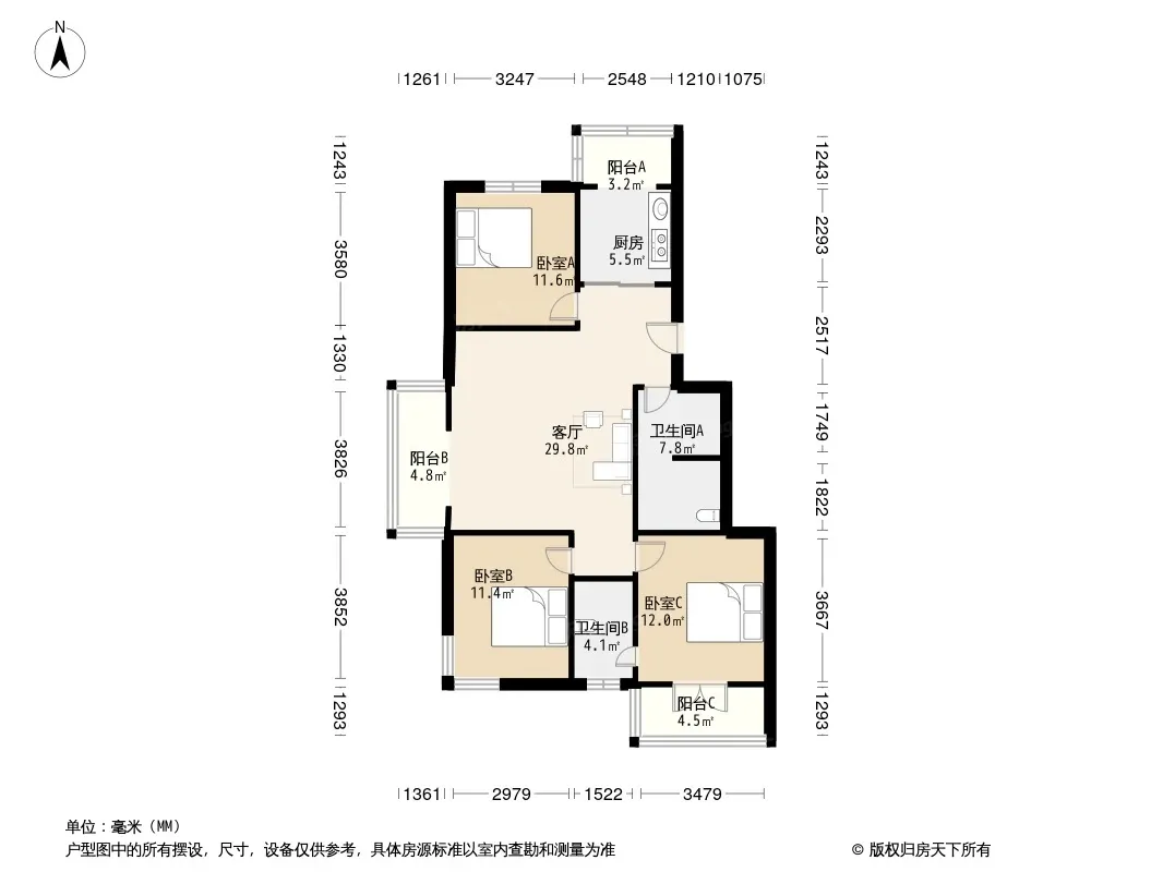 3室1厅2卫