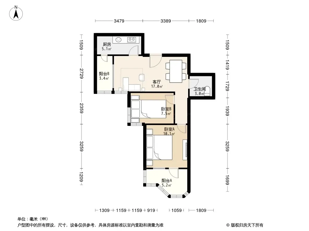 户型齐全,主打客厅朝南二居