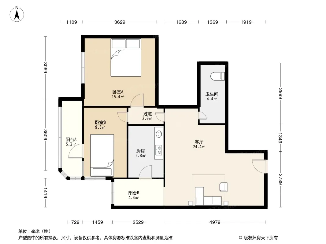 户型齐全,主打客厅朝南二居