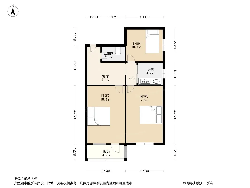 3室1厅1卫