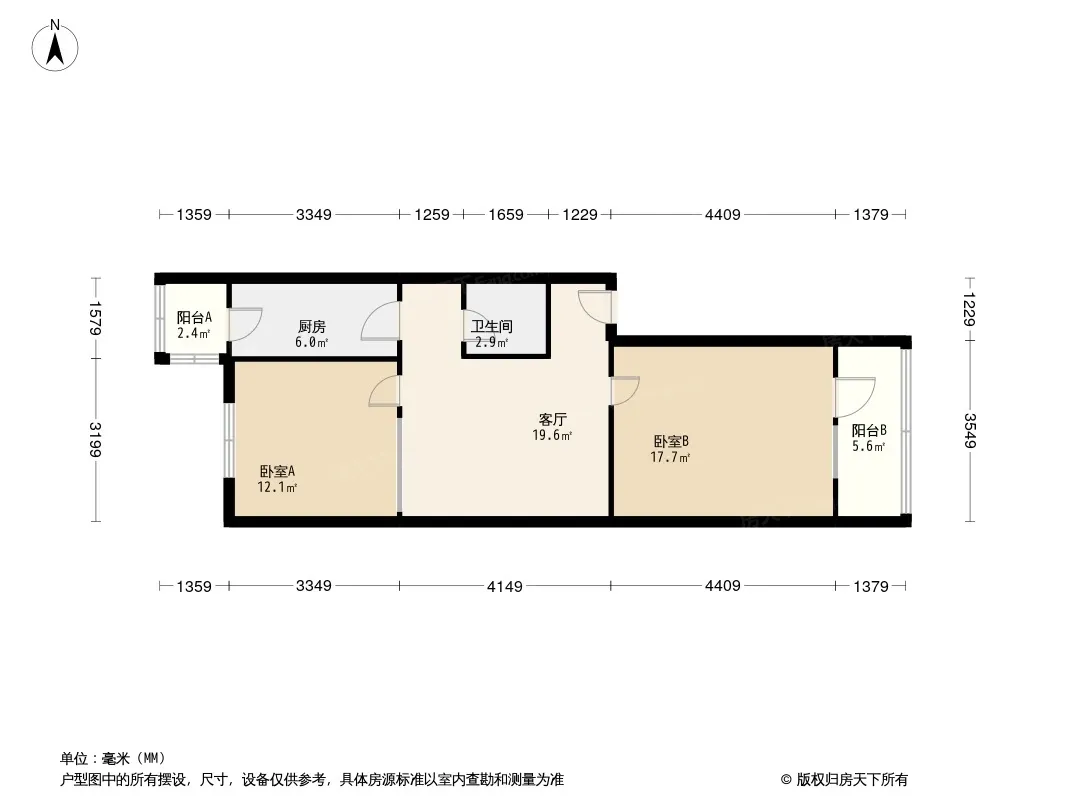 户型齐全,主打户型方正,明厨,主卧朝南二居