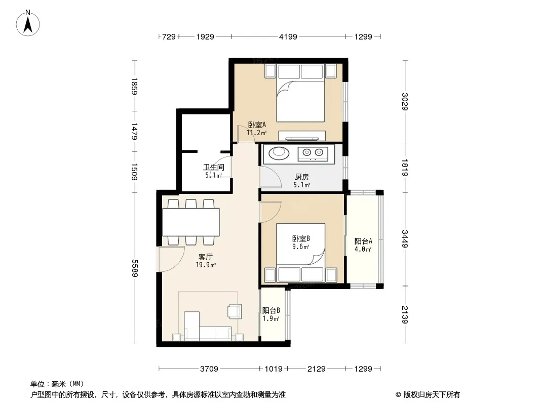 户型齐全,主打户型方正,明厨,客厅朝南二居