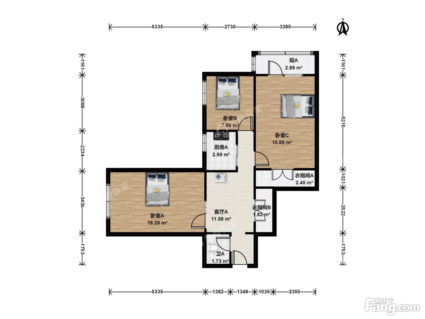 户型齐全,主打双卧朝南,主卧朝南二居