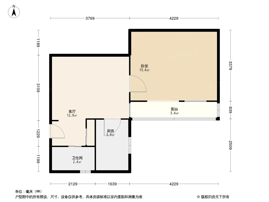 户型齐全,主打明卫,明厨,客厅朝南,全明格局一居