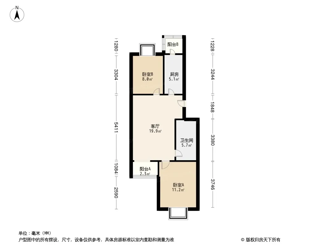 小天竺一号院 2室1厅 南 北