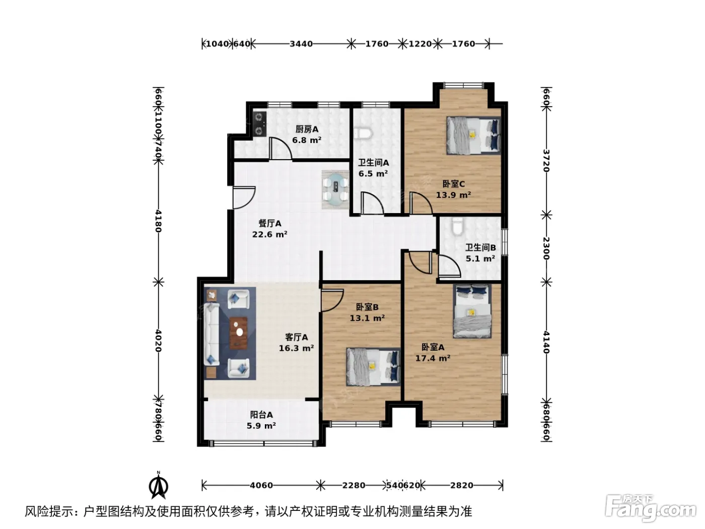 户型介绍:此房户型为3室2厅2卫,建筑面积为139.54平米,朝向为南北。卫生间也有窗户,通风效果加倍。