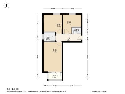 三家店新河路 3室1厅 南 北