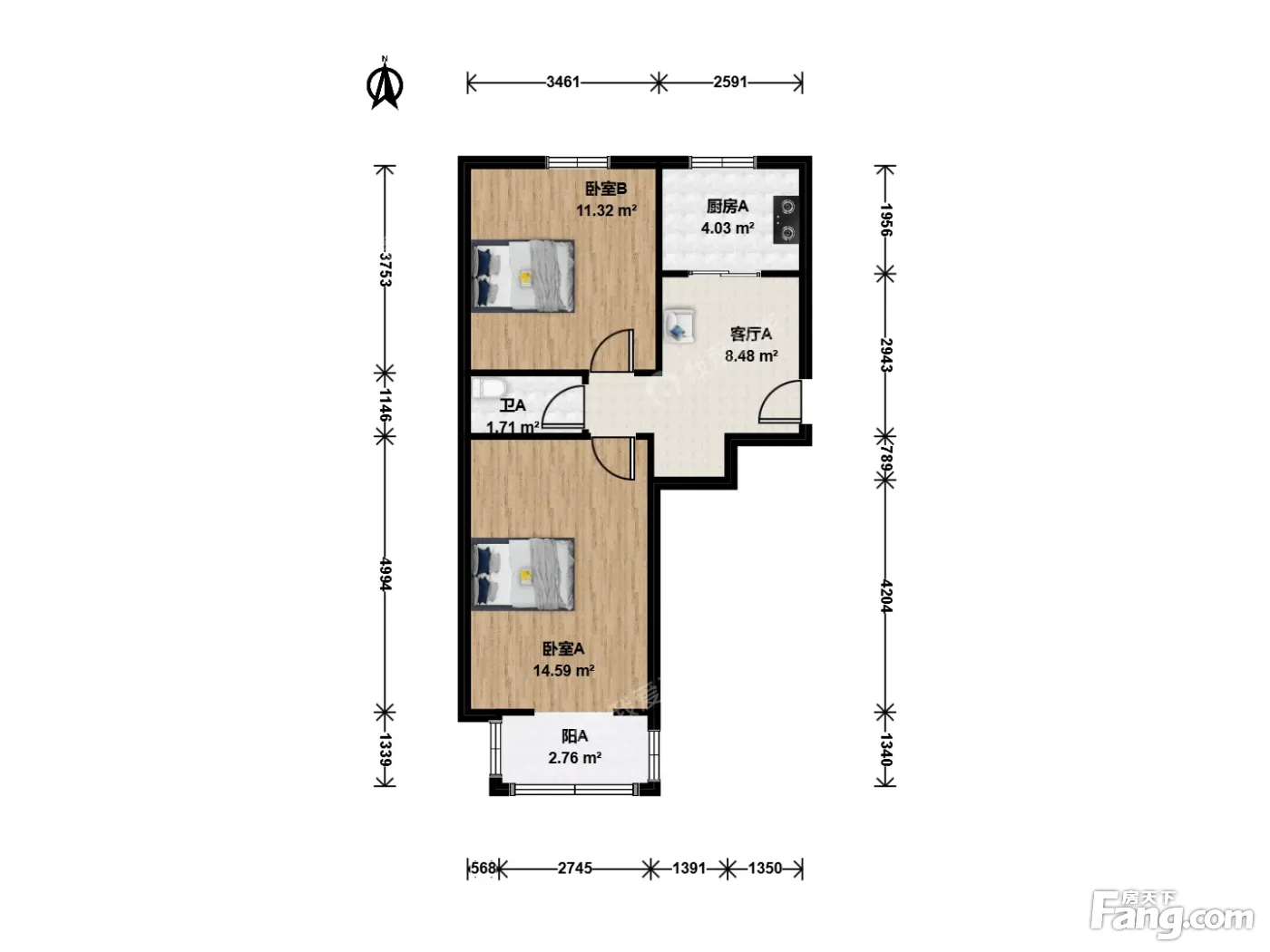 户型齐全,主打明厨,主卧朝南二居