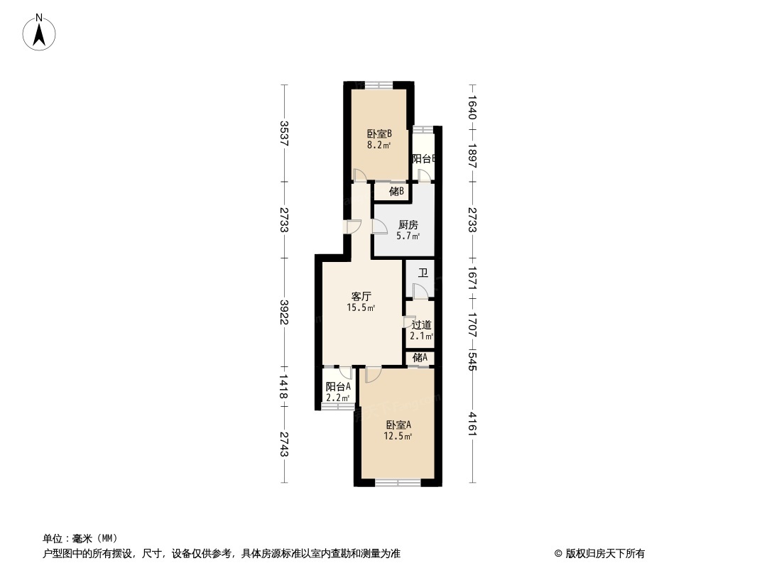 户型齐全,主打户型方正,明厨,主卧朝南二居