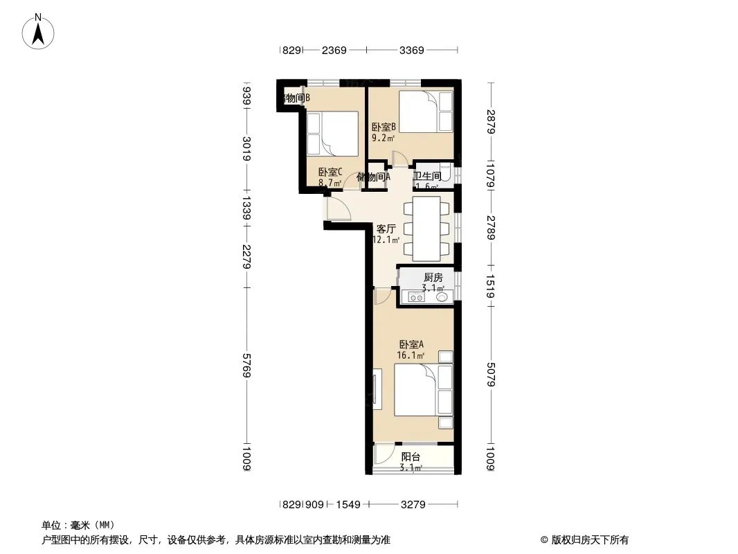 通州北苑·杨庄北街3号院·3室·1厅