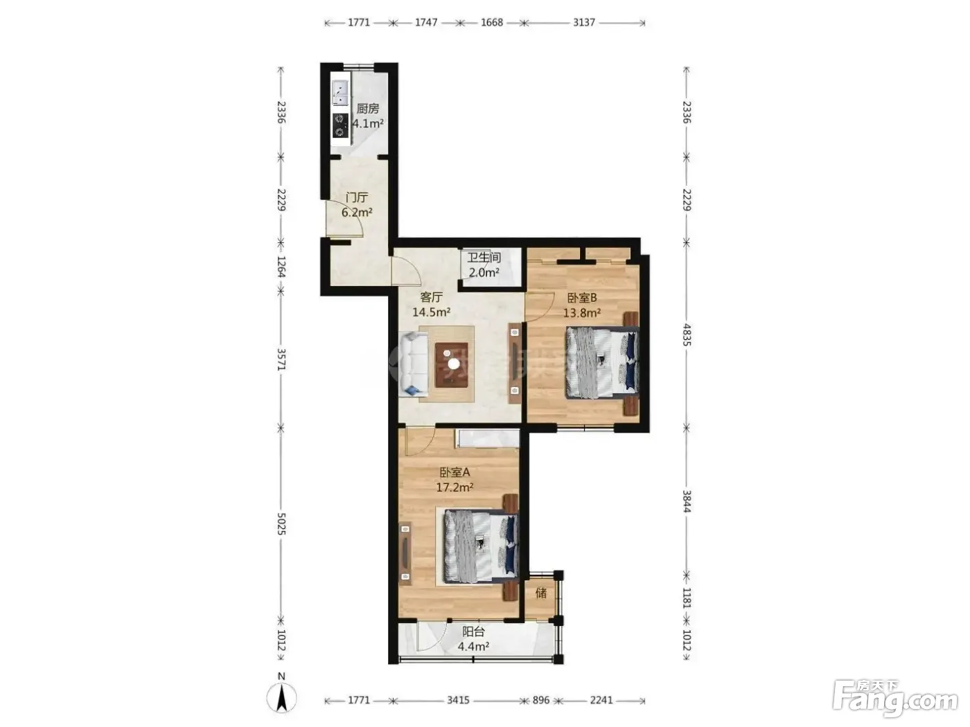 户型齐全,主打明厨,客厅朝南二居