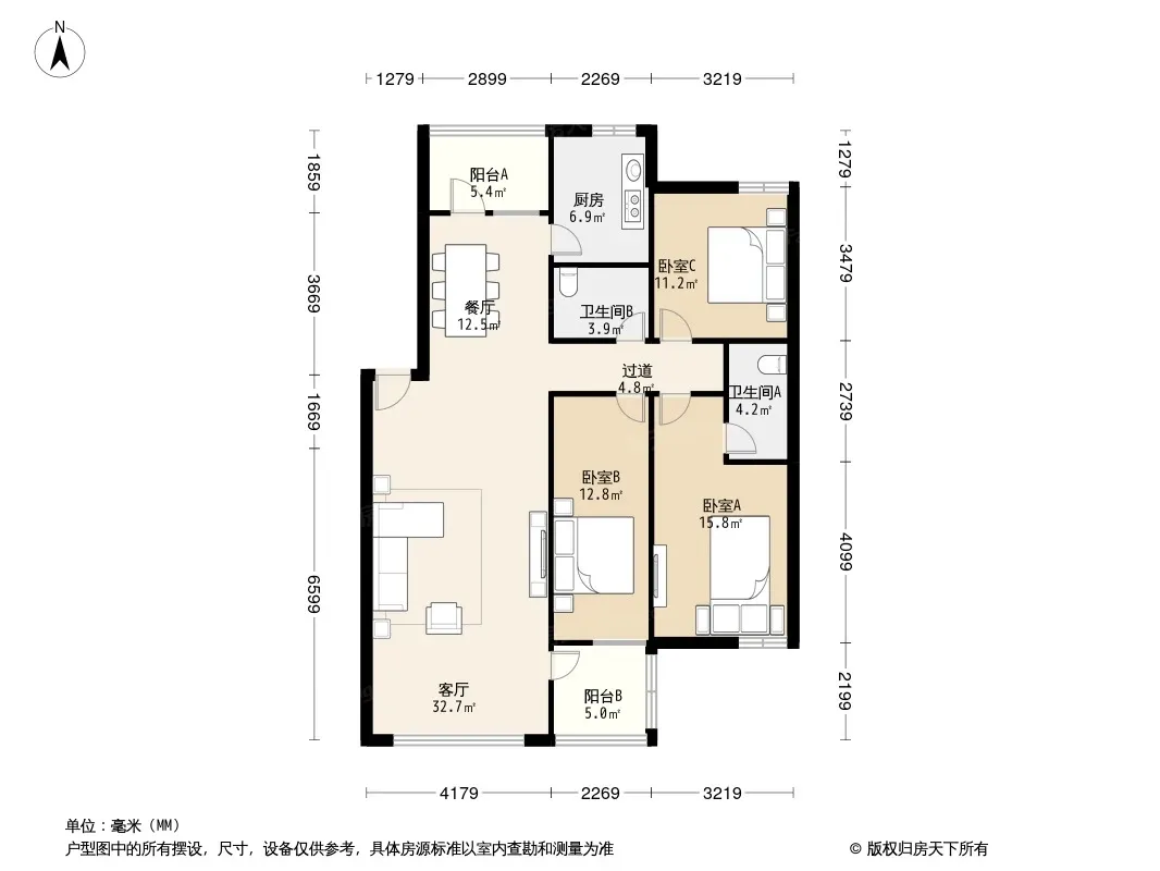 户型齐全,主打户型方正,明厨,客厅朝南,明卫三居