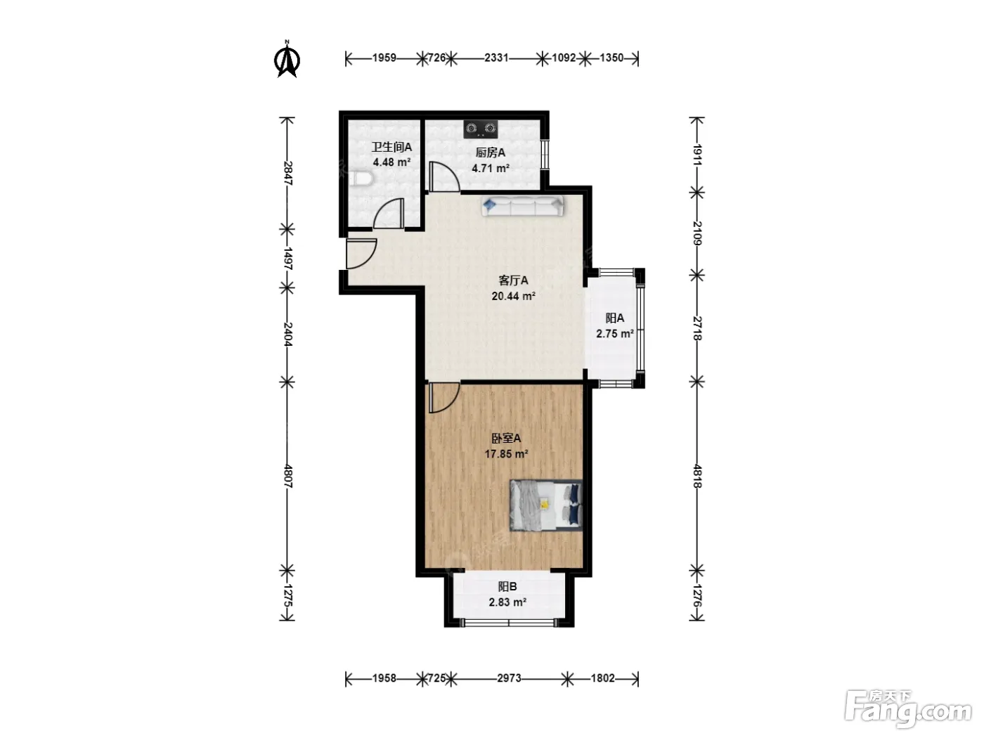 户型介绍:东南向一室一厅,面积68.17平米