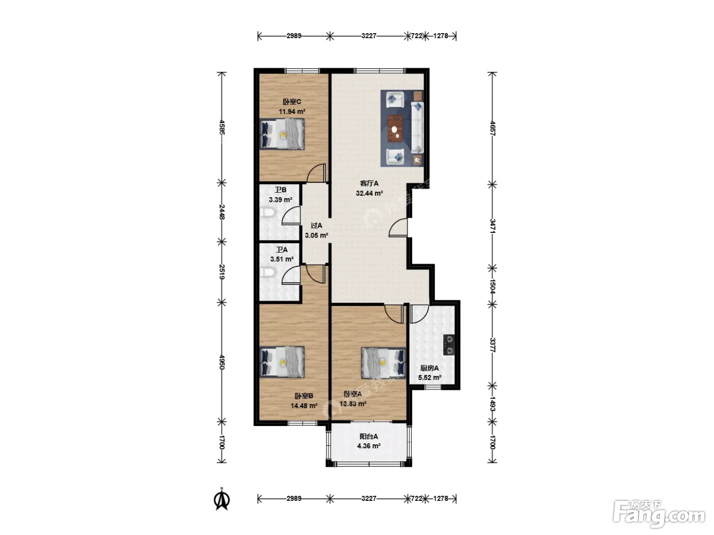 3室1厅2卫