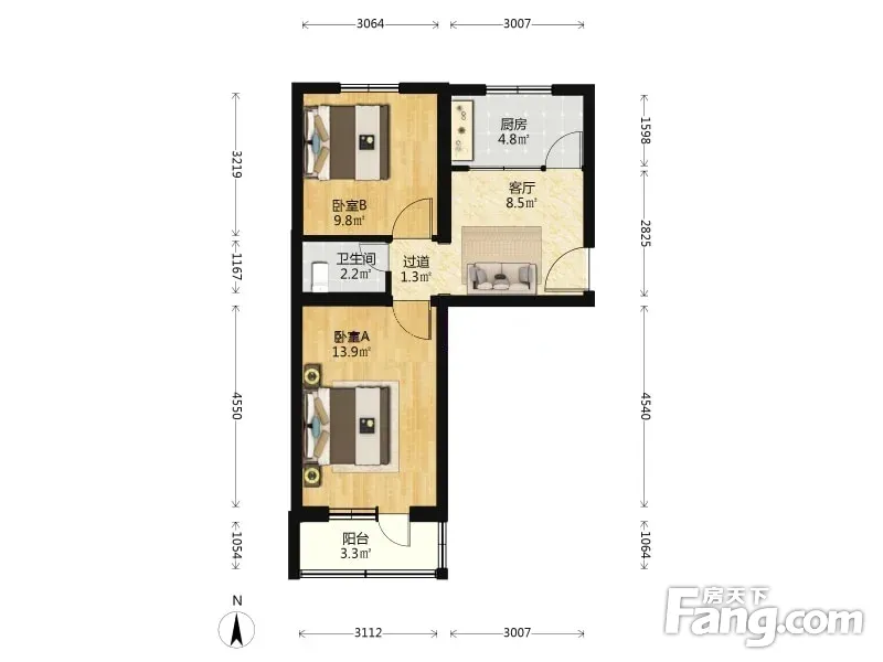工人疗养院家属院户型主要有49平-64平的户型方正,明厨,主卧朝南的二居 、40平-40平的明厨的一居 。