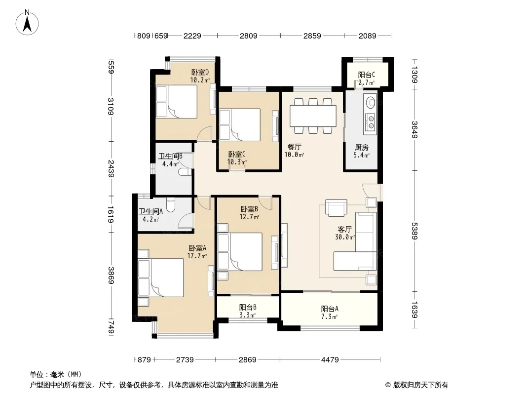 香悦四季东区 精装四居 南北通透 全明户型