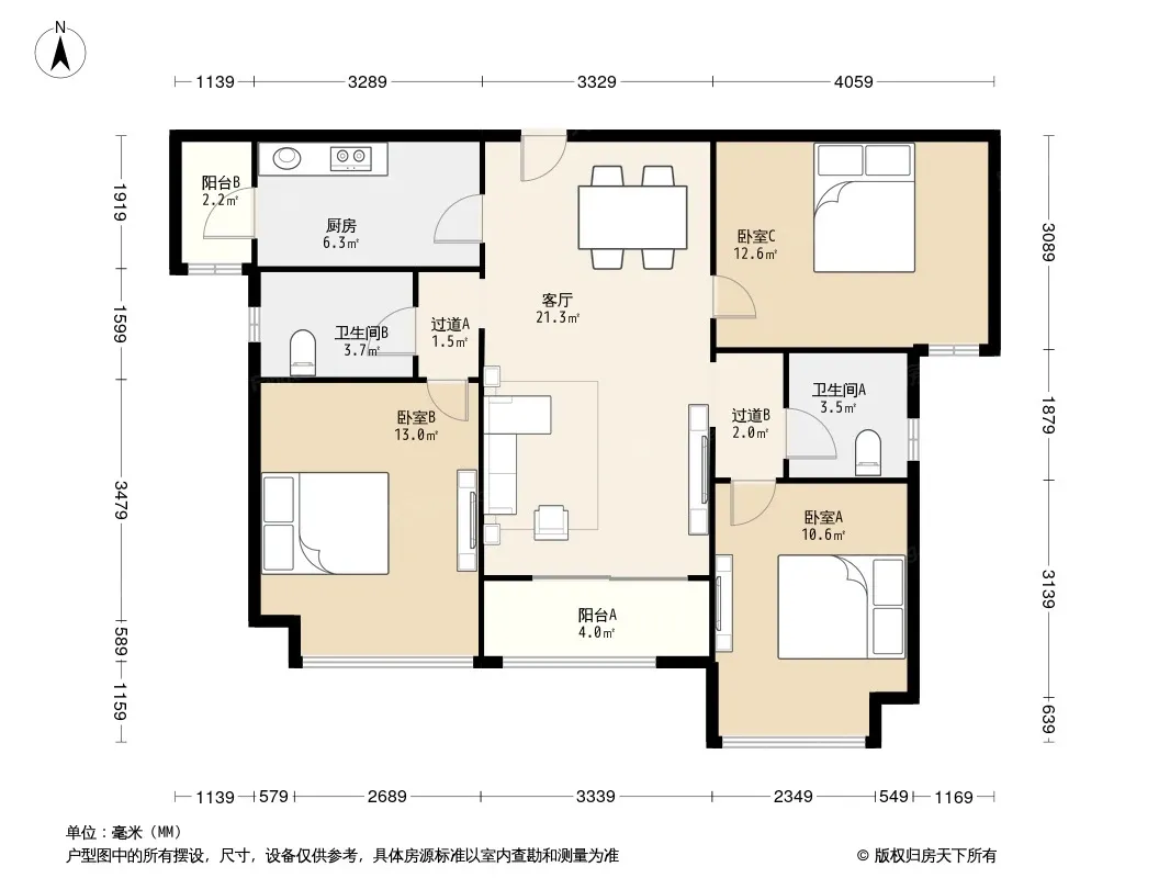 户型齐全,主打户型方正,明卫,客厅朝南,双卧朝南三居