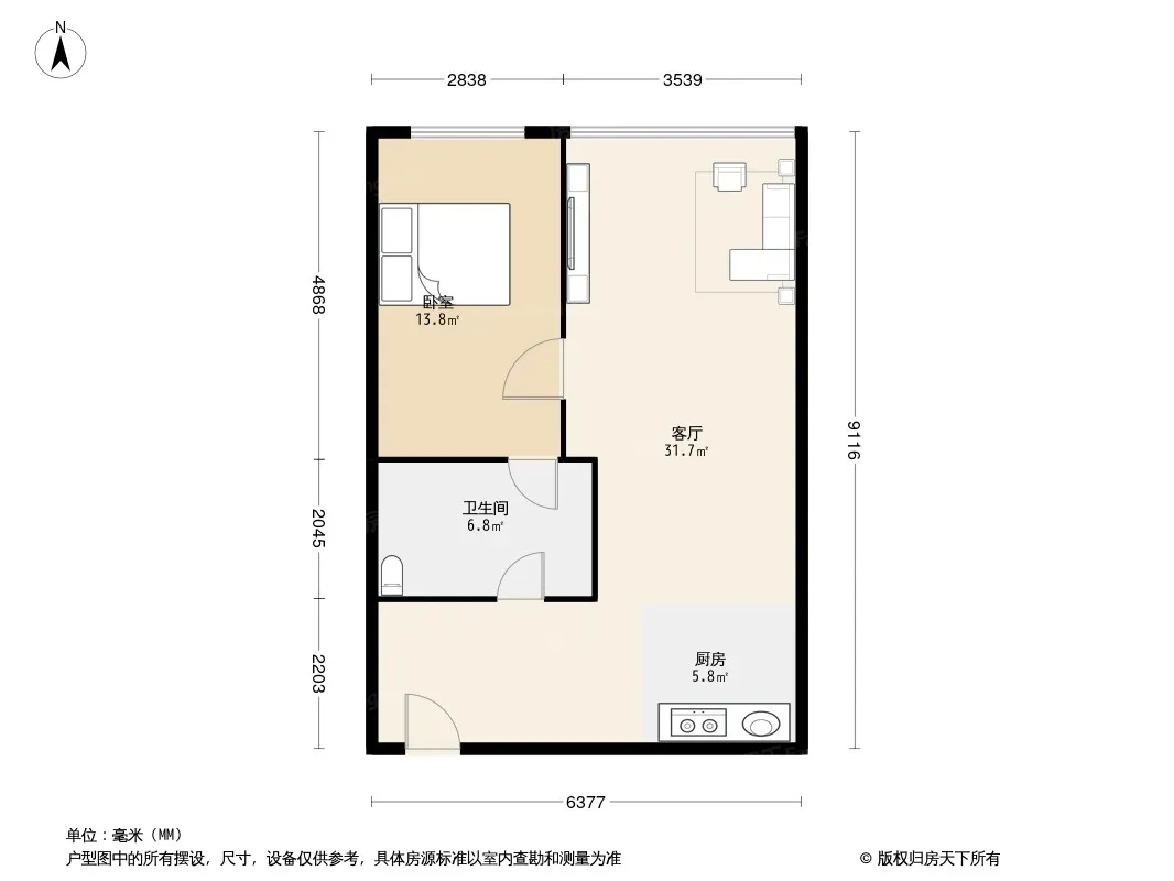 大悦城公寓 1室1厅 北