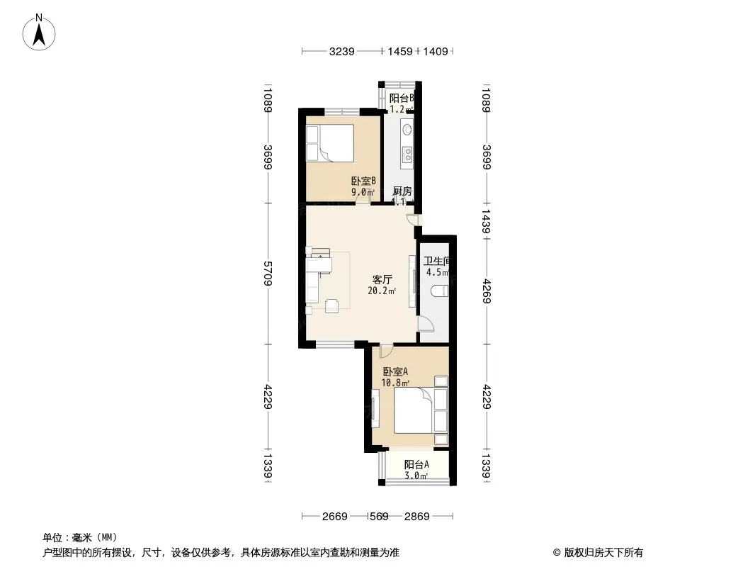 户型齐全,主打客厅朝南,双阳台二居