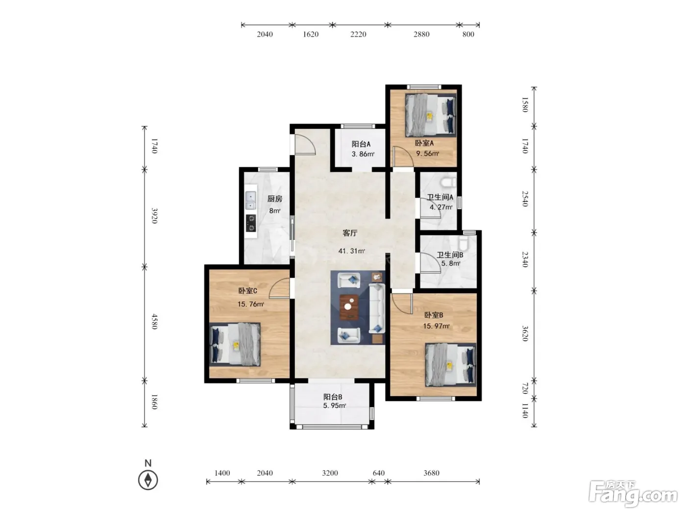 3室1厅2卫