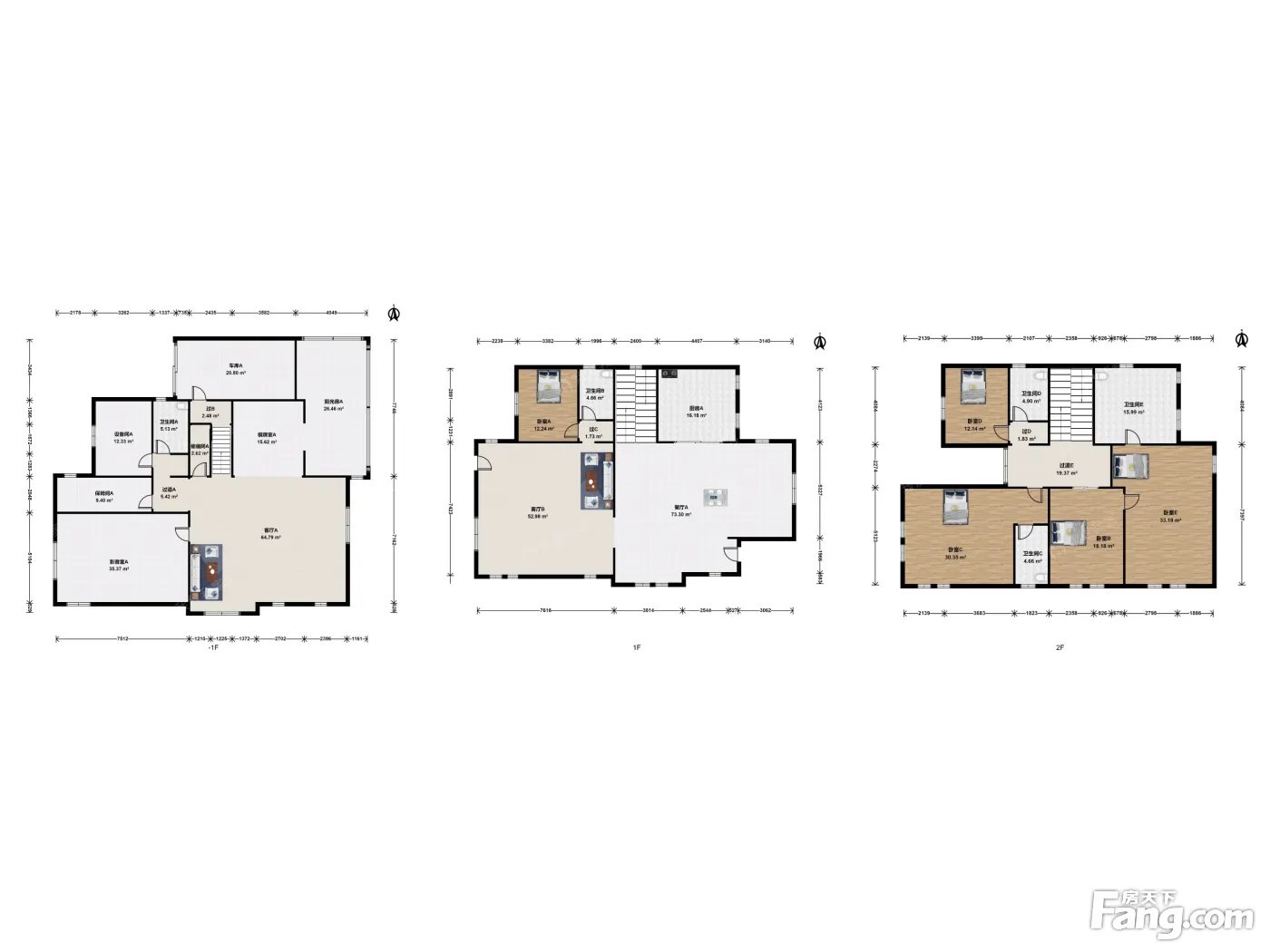 户型介绍:一层南向主客厅,东向餐厅,北向厨房,南向长辈房 二层南向双主卧室,次卧室朝北,全套房设计 娱乐层南向主客厅,影音室,设备间,洗衣房。