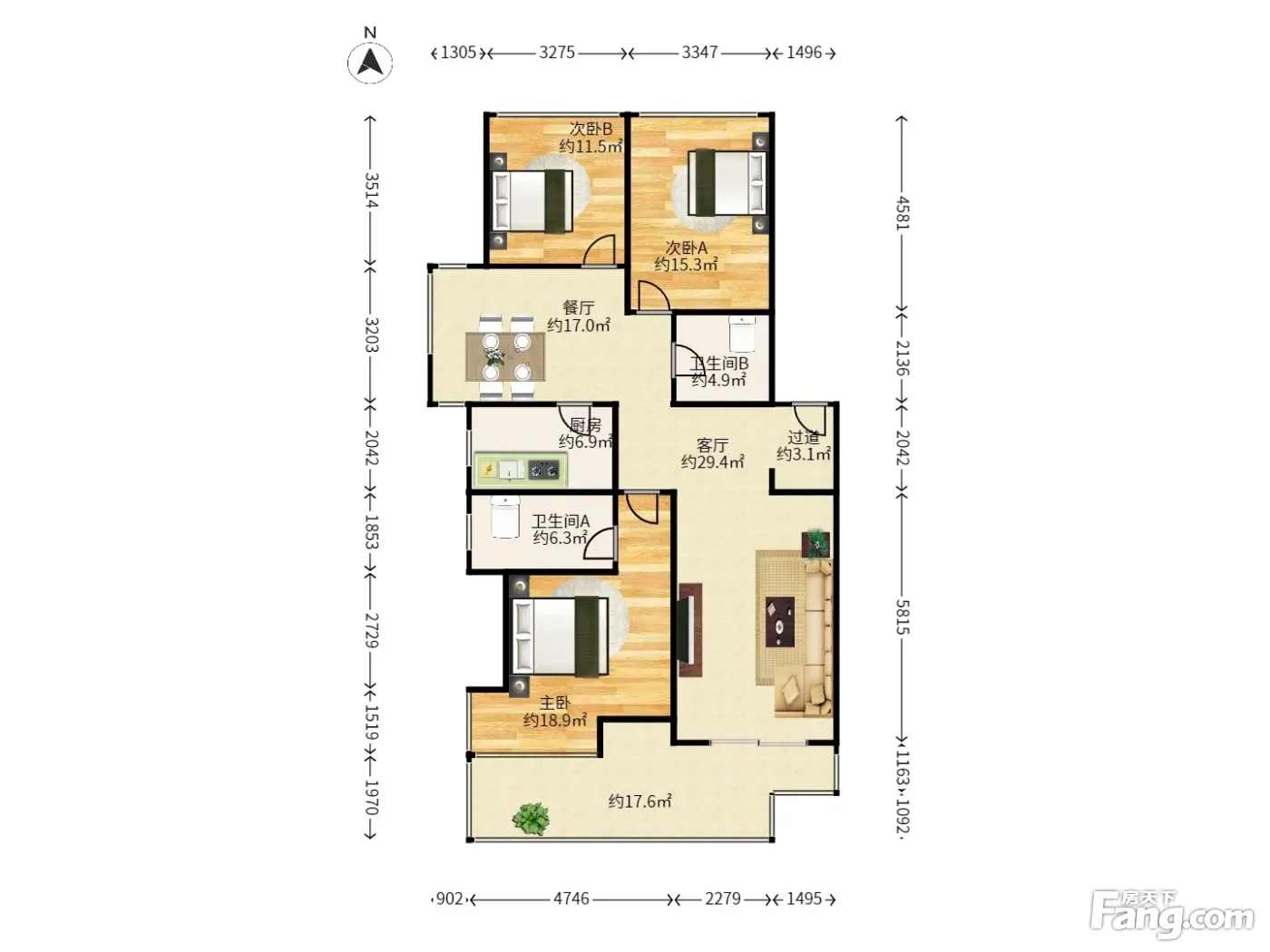 红木林北区4室2厅南北
