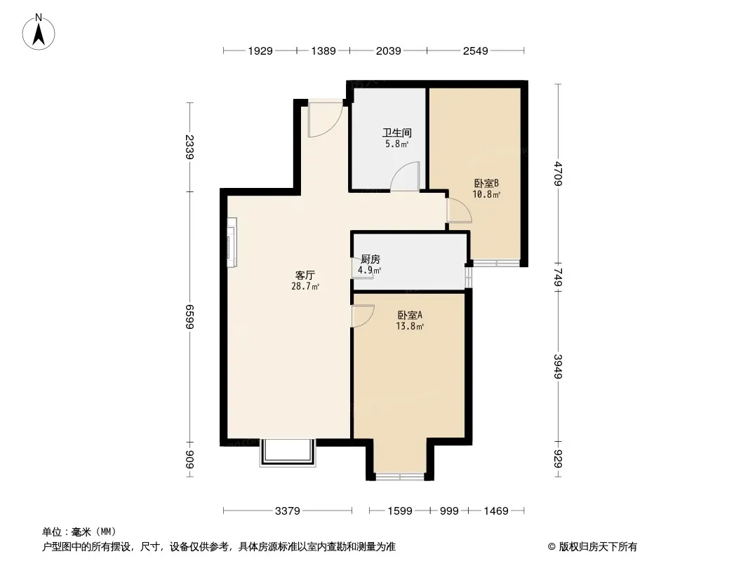 户型齐全,主打户型方正,明厨,客厅朝南,双卧朝南二居