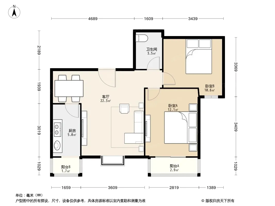 户型齐全,主打户型方正,双阳台,主卧朝南二居