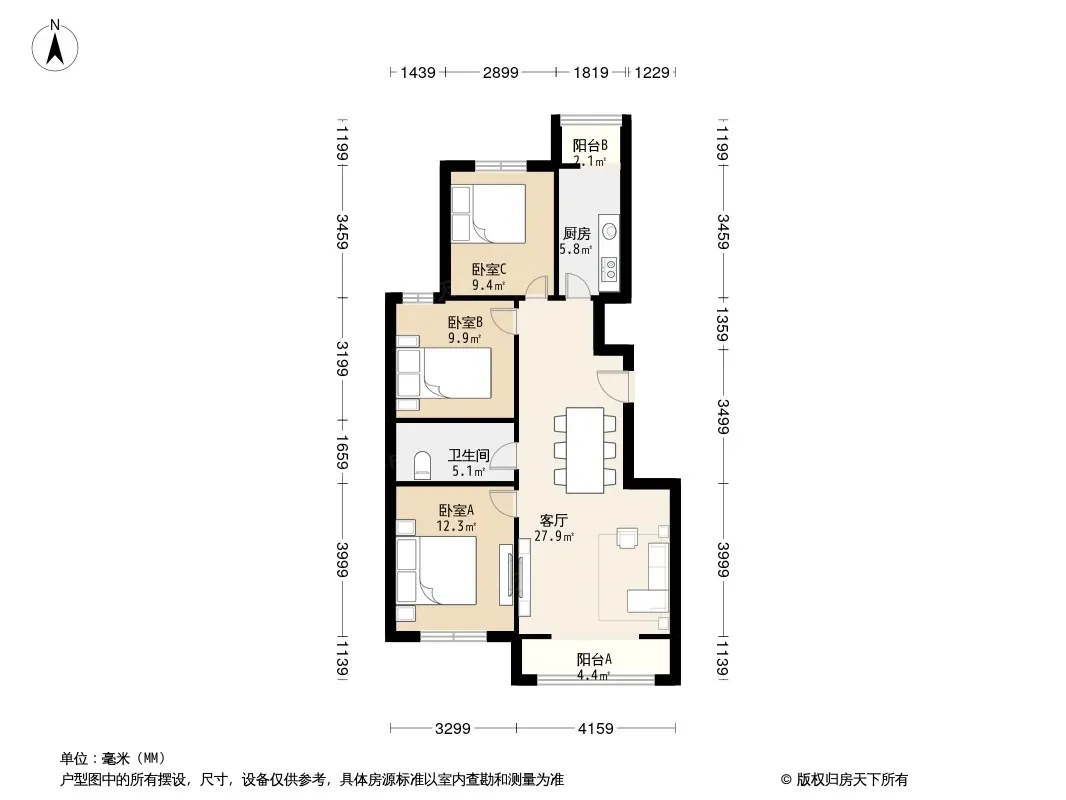 户型齐全,主打户型方正,主卧朝南,明厨三居