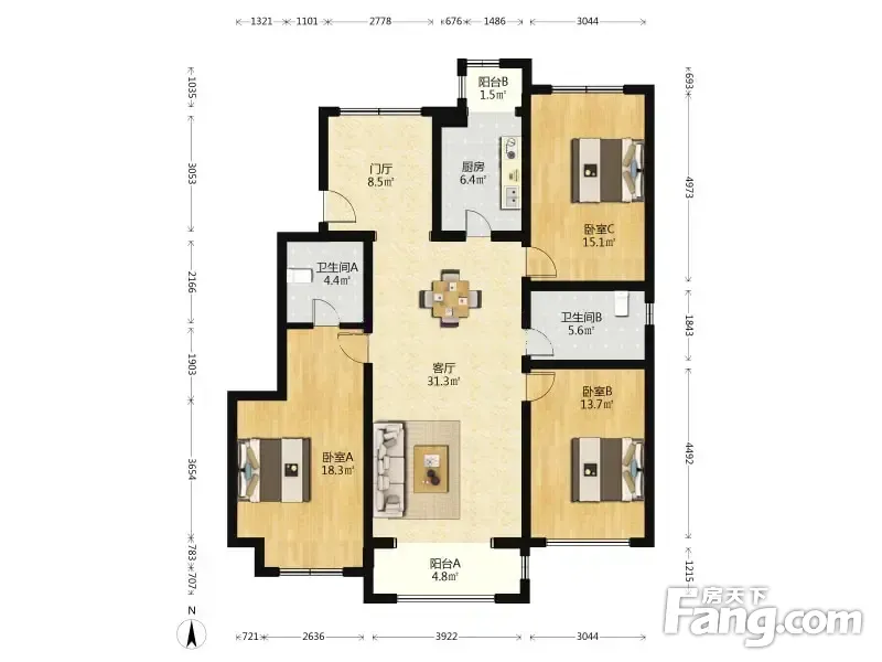 3室1厅2卫
